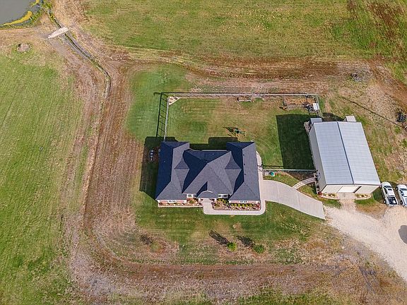 Country living at its finest! Custom 2750 sq ft home built in 2012 with hardwood floors and granite throughout the house. House contains 4 bedrooms with two full baths. Large two car garage with 4 year old roof. Has breakfast nook, separate dining room, and office. Security cameras and full security system throughout the house. Full landscaping around house and shop. Has matching shop, well house, and chicken coop! Home has taller ceilings throughout the kitchen, living room, and bedrooms. All rooms contain large walk-in closets with the master bedroom containing two walk-ins. Master bath and office also contain closet areas. Master bath has large walk-in shower with a jacuzzi tub. Large covered back porch with new concrete overlay facing the large fenced back yard. House sits on 18 acres with 40x60x16 insulated shop. Shop is wired with full lighting and 50 amp breaker with plug for camper storage. Shop is also plumbed for water and bathroom drain. Property is fully fenced with galvanized net wire. A stocked pond with fill line sits at the back on the property. Land has established coastal grass ready for bailing. House and shop sits approximately 600' off the road with larger tracts of land surrounding property.