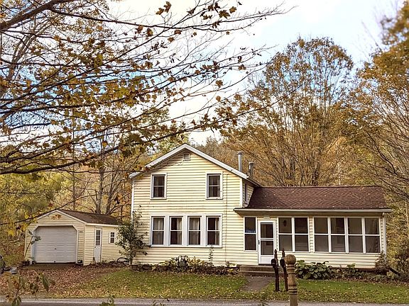 Check out this Updated Farmhouse offering 2-3 BR, 1 1/2 BA all situated on 8 acres in McKean! Master Bedroom was on first floor but converted into a den/dining room with pass way into the kitchen. Could easily be converted back into a 1st Floor BR with little work. The Bright Large Eat-In Appplianced Kitchen has tons of natural light shining in through the Enclosed Front Porch and Hardware lovingly made by the Owner! The Rear Family Room was Added in 01 and has a newer woodstove and Sliding Doors opening to the Back Deck Overlooking the Large Back Yard and Lamson Run Creek. There is Plenty of Wildlife to Watch and Room to Roam on this Great Country Property. The Roof was Replaced in 10/2023 and a 200 Amp Electric service was installed for the owners Downstairs Studio that has outside access plus an additional outside entrance to Basement from the Back Patio Allows for Easy Access from the Yard. Replacement Windows Throughout have been done over time. This is a Well Cared for Home!