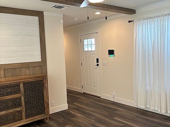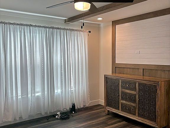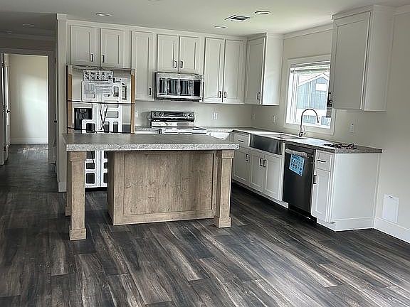 Inside, you’ll be welcomed by Iron Mountain Pine ceiling beams and a gorgeous accent wall with shiplap and pine, adding warmth and character. The kitchen boasts a spacious island and stainless steel appliances, ideal for cooking and entertaining.