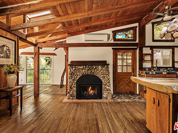Tucked away on a private lane in Benedict Canyon, this property offers the rare feeling of escape, a true retreat that doesn't feel like LA living yet it's just minutes from Beverly Hills. Spread across three APNs and over half an acre of lush canyon landscape, this preserved artist's bungalow exudes vintage charm. Inside, original oak details, vaulted ceilings, solar powered skylights, and a stone fireplace create a warm, timeless atmosphere. A large refinished deck opens to peaceful canyon views, ideal for quiet mornings or intimate gatherings. With Hollywood history (once home to heiress Laura Harding and host to a performance by The Mamas & the Papas), the home offers endless potential to expand, restore, or reimagine, all while honoring its historic soul.