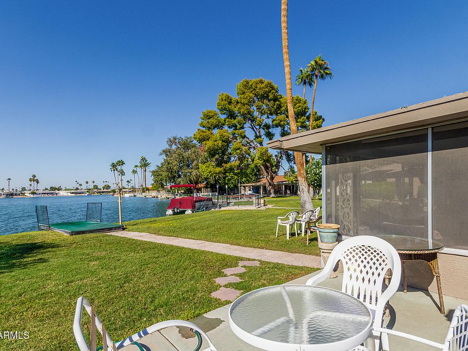 Welcome to your lakeside retreat! This delightful 2-bedroom charmer greets you with a lush front yard and serene lake views right out front. Inside, you'll find tile floors, a spacious living room with a dry bar (perfect for entertaining!), and a kitchen that's both stylish and functional complete with matching appliances, wall ovens, and endless cabinet space. The main bedroom offers backyard access and a roomy walk-in closet. Unwind with your favorite read in the screened-in patio or sip your morning brew while soaking in the tranquil lake views. This gem truly has it all—inside and out! Start creating lasting memories in this dream home!
