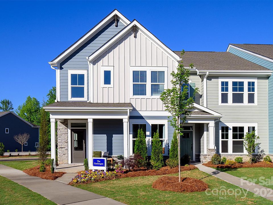 Welcome to The Gardengate, a stunning model home that will be sold fully furnished and beautifully appointed—exactly as shown! This end-unit townhome sits on a desirable corner lot, offering extra privacy, natural light, and timeless curb appeal.
