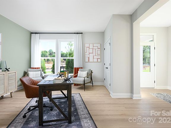 Step through the inviting foyer, where expansive windows fill the space with warmth and light. Just off the entry, an open study or office area provides the perfect spot for working from home or creating a cozy reading nook.