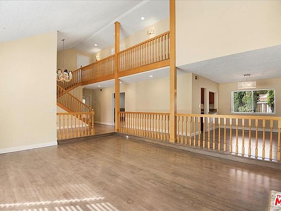 This 2- story home with 6 bedrooms and 4 baths has a welcoming foyer with a high ceiling that shows off a loft-style upstairs hallway. Beautiful traditional wood banister and railings set the tone for a dramatic entry with classic elegance that frames the great room with a fireplace. Formal dining opens to a chef's kitchen with a 6-burner Wolf stove, plenty of counter space and a large breakfast area. The spacious Kitchen overlooks the backyard with mature trees and landscaping around the pool. 4 bedrooms on the main level have recently been updated with wide-planked flooring, floors throughout the 1st and 2nd level have been recently refinished. Master suite and another en suite bedroom are on the second level, plus, a bonus room with a pitched roof is perfect for an art studio or home office. This wonderful home has a lot to offer. A must-see!