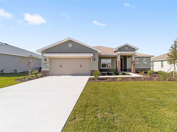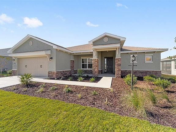 Experience refined Florida living in this stunning new-construction Livingston floor plan, thoughtfully designed for comfort, style, and versatility within the award-winning 55+ community of On Top of the World. Offering 2 bedrooms, 2 baths, a spacious flex room, and a 2-car garage with dedicated golf cart space, this elegant residence features 1,718 sq. ft. of beautifully finished living space enhanced by laminate flooring and abundant recessed lighting throughout. The expansive great room opens to a showstopping gourmet kitchen appointed with an oversized quartz island, crisp white shaker cabinetry, stainless steel appliances, sleek tile backsplash, and generous storage—perfect for entertaining or everyday enjoyment. A charming breakfast area adds warmth and functionality, while the flex room provides endless options for a home office, den, or creative space. Step through sliding glass doors to the private enclosed lanai, offering a serene retreat ideal for year-round relaxation. Additional highlights include a full laundry suite, covered front porch, energy-efficient construction, and thoughtful design details throughout. Residents enjoy unparalleled amenities including golf, fitness and wellness programming, weekly entertainment, lifelong learning opportunities, over 21 miles of scenic walking trails, and more than 175 resident clubs, all set amid beautifully maintained grounds in one of Florida’s most celebrated active adult communities.