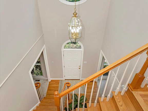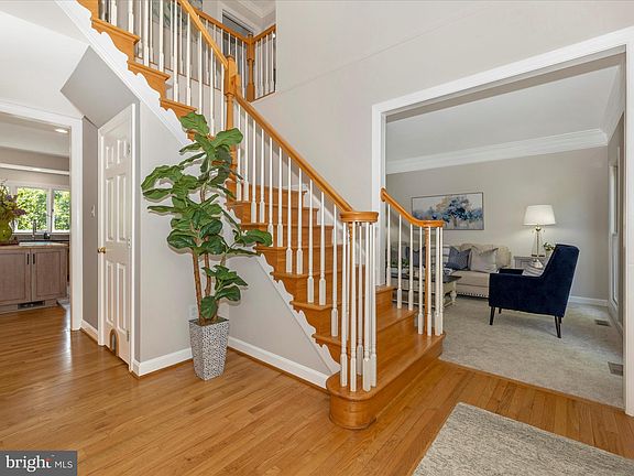 Nestled atop a terraced hill, this beautiful NV Belmont residence is surrounded by maples, oaks, and river birches. Located in the sought-after Goshen Oaks/Kings Bridge neighborhood, it is on nearly an acre of land, making it the community's largest and most private lot. This home offers stunning views and natural beauty year-round, with expansive windows throughout the family room, informal and formal dining areas, and the kitchen. The many windows ensure picturesque scenes from every room and a sunfilled, cheerful home. *Inside the Home* Step into a grand two-story foyer, complete with a sweeping staircase. To your left, you'll find a spacious office, and to your right, the elegant family room and dining room, both adorned with double crown molding, chair rails, a new farmhouse chic chandelier, and plush new carpet. Central to the home, the kitchen provides expansive outdoor views and features modern Schuler cabinetry in a rich cappuccino cherry wood finish. The cabinets boast soft-close doors and drawers, roll-out shelves, vertical cutting board storage, a spice drawer, and a "lazy Susan" turntable. The perimeter countertop is made of Laneshaw Signature Series Cambria quartz. An artisanal end-grain butcher block is the countertop for the large island. This sunny, spacious kitchen seamlessly flows into the informal dining area, highlighted by a new chandelier. The step-down family room is a sunny haven, transitioning from light oak hardwood flooring to rustic reclaimed Pennsylvania oak. Enjoy the traditional fireplace with a mantle and direct access to a deck shaded by trumpet vine and crape myrtle. The primary bedroom is a luxurious retreat upstairs featuring a grand vaulted ceiling, large windows, a charming window seat, a chandelier, a separate sitting room, and a walk-in closet. The en-suite bathroom is clean and bright with a jetted tub, separate shower, double vanity, and two large windows. The upper level also includes three additional spacious bedrooms, two with walk-in closets, all with hardwood flooring, and an updated hall bath. The basement is a versatile space with a full bath, a wet bar, room for an extra refrigerator, and tile flooring. With numerous outlets previously used for desks and crafts, this area is perfect for a home office or hobby room. There is also a workshop that the new homeowner may transform into a bedroom, movie room, or game room. Additional storage is plentiful with built-in shelving. The rear of the property is a true outdoor oasis. Enjoy a large shaded deck, a manmade pond (no need to feed the fish!), a paver patio, and a BBQ grill/smoker. Expansive level areas are ideal for sports and outdoor activities along the top and bottom of the hill. Mature trees and wide-open views create a serene and private atmosphere. Key features include a two-car garage with new doors (2023), a newer roof and gutters (2020), and all kitchen and laundry appliances that are five years old or less! The A/C is a dual-zone programmable unit. There is also an attic fan. Lastly, the home can connect to the cable companies or has an "over-the-air" antenna. The Goshen Oaks Community has a "tot-lot," a neighborhood picnic area, and walking paths connecting to Damascus Regional Park and the beautiful Magruder Branch Trail. This home perfectly blends modern elegance, functionality, and natural beauty. Take advantage of the opportunity to make this lovely property your own!