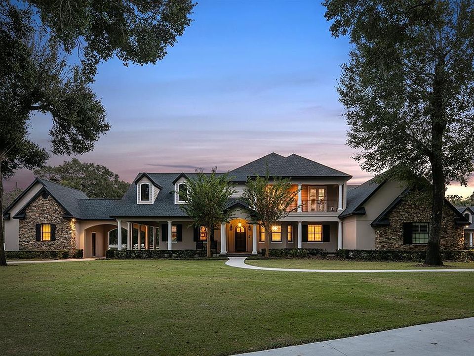 Incredible opportunity to own one of the last remaining large acreage properties in all of Windermere. This beautiful, privately gated estate consists of two parcels and close to five acres of land. Perfect for horses with onsite fenced pastures, paddocks, tack room and seven stall stable. Enjoy the privacy, peacefulness, and majestic oaks of this idyllic location – all while being so close to everything that Orlando has to offer. Upon entering the gates and driving under the gorgeous oak canopy’s, you will be greeted by the homes stone exterior, wrapped porches and stately columns. This recently remodeled custom home has an abundance of features that showcase elegance and warmth. From the grand staircase w/ wrought iron rail and walnut treads, herringbone ceilings, wood beams, travertine and solid walnut wood floors - this home is a statement of craftsmanship. A brand-new transitional chefs kitchen awaits with a massive natural gas Wolf range, Subzero refrigerator/freezer, custom cabinetry, walk in pantry, dual islands with striking quarts tops and a modern backsplash. The kitchen opens perfectly to the informal dining area, large family room with new modern fireplace – all overlooking the pool and manicured grounds. The primary suite featuring a tray ceiling, newly refinished walnut floors, dual closets, and newly updated bath with walk in shower custom tile details and soaking tub. The study is located off the entry with custom millwork and is perfect for quiet pursuits. An additional guest suite, laundry area and five car garage complete the first floor of the main house. Upstairs you will find a fabulous game room/loft, three additional bedroom suites and additional storage. One of the other very unique features of this home is the “guest house” boasting a newly completed transitional kitchen, living area and two additional bedroom suites. Additional recent upgrades include, new roof, multiple new AC’s, new kitchen, new baths, new pool, updated flooring and fully redone guest house.