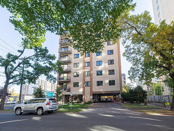 SPACIOUS, 2 Bed 1 Bath with a COVERED, energized, parking stall, STORAGE LOCKER, and fantastic views, in a cared for building on a beautiful street! Did I mention the reasonable condo fees, INCLUDING electricity! With over 900 sq ft, newer vinyl windows, and a great galley kitchen with plenty of space for additional cabinets, or a kitchen nook, with a little TLC this pet friendly condo could be an adorable starter home or a great opportunity for university students! With easy access to both NAIT and UofA plus walking distance to a Safeway or the Brewery District, the location truly speaks for itself. With upgraded common area including a very secure front entryway, and FREE laundry on every floor, this complex gives off a comfortable higher end feel but without the high price tag! Building just had a newer 2024 reserve fund study completed with minimal to no requirement for a special assessment in the next 5-10 years! A MUST SEE.