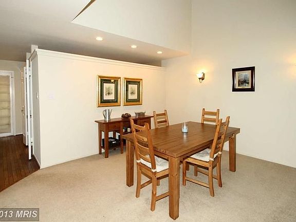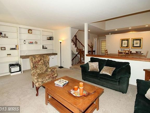 Beautifully maintained TH. Hardwood entry foyer, large eat in kit with double windows, two story DR w/ceiling fan.step down LR w/wood burning fireplace and built in bookshelves , w/o to ground lvl deck, spaces bedrms. Custom tiled hall bath with decorator tile accents, Mbr w/connecting bath also updated.Lower lvl recrm w/surround sound wiring, wetbar and full bath.Storage rm w/built in counters