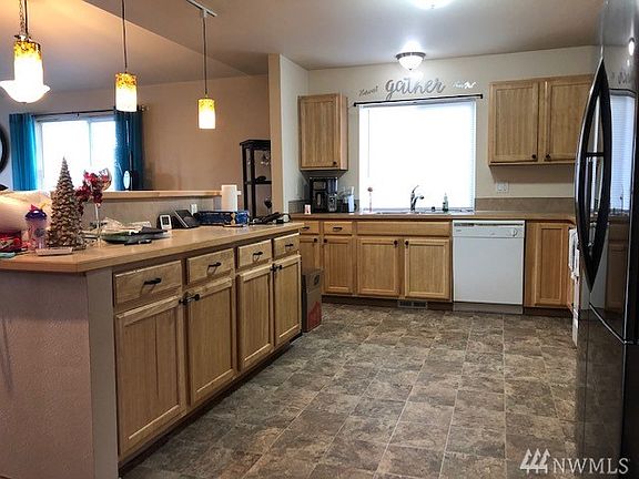 Ideal Location! 3 bedroom rambler w/open floor plan! Large kitchen w/plenty of maple cabinets & counter space. Island counter w/breakfast bar separates living rm w/vaulted ceilings & bay window. Family room is the feature bonus area! Split bedroom layout. Over-sized laundry room. Linen closets. Master Bedroom w/walk-in closet & full bath. Garage door opener. Fully fenced back yard with fire pit & covered patio. New Carpet and Windows. Close to schools, shopping, entertainment & 3 community parks! Easy commute to JBLM.