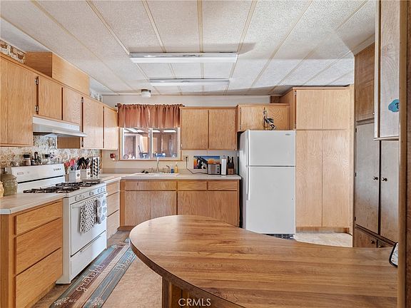 Cute and clean manufactured home in Pinon Hills that's ready to be called home. This 1,344 +/- square foot home offers an open living room that wraps around to the spacious kitchen and dining room. The bedrooms are both good sized rooms and the master bath offers a dual vanity sink. The laundry room is large and offers additional storage space as well. Off the back of the home is an attached carport to offer covered parking. There is a smaller container that can stay on the property for extra storage. The property is flat and very usable for anyone who's looking to build a detached garage, a large shop, or horse (or other animal) facilities. The property is completely fenced, has great views of the San Gabriel Mountains to the south, and is located not too far from Hwy 138 for quick and easy commuting.