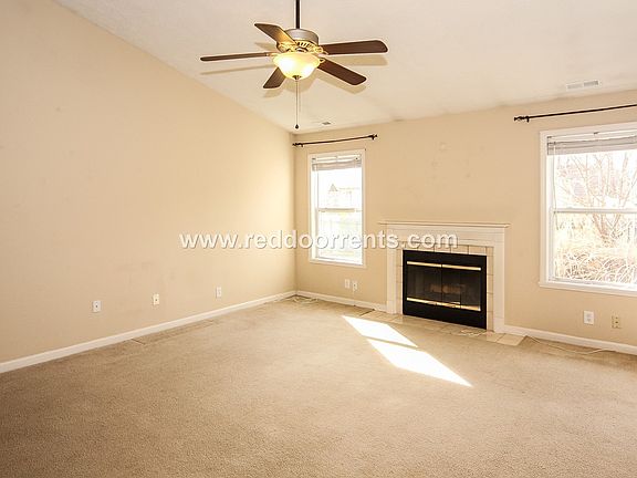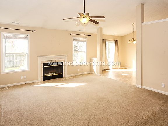 Central fireplaceOpen flow layoutPrivate fenced backyard