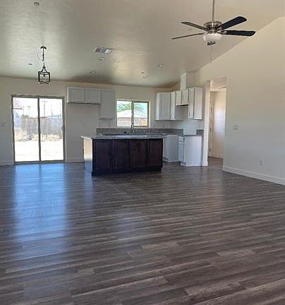 Beautiful Home located in California City. Home features 1498 sq. ft, 4 bedrooms and 2 full bathrooms. Open kitchen with quartz countertops and island. Features include large entry with vaulted ceilings Open Floor Plan, Ceiling, Spacious bedrooms, large master bedroom, laminate flooring, carpet in bedrooms and a large laundry room. Solar included in lease. 1 year
