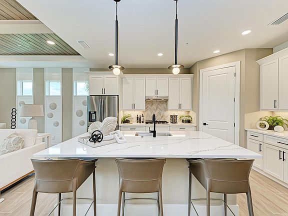 This downstairs furnished Marco Island Floor Plan is single-level living at its best. This lower level unit feature 3 bedrooms, 2 full baths, and a 2-car garage. The owner's suite features a spacious bedroom, walk-in closet, and private bath. The main living space boasts an open concept with a large kitchen that flows perfectly into the living and dining area making entertaining a breeze. 2 additional bedrooms and another full bath can be found at the other end of the home along with a spacious laundry room and additional storage space.