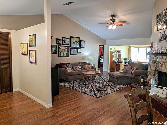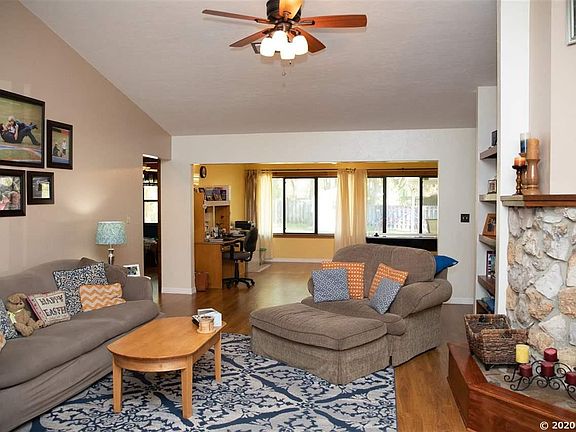 This spacious, family home is exactly what youve been searching for! The fantastic layout includes 2,200 square feet with 3 bedrooms, 2 baths, an additional sun room, and converted small office space. Its got everything youve been looking for high vaulted ceilings, lots of natural light, recently installed wood floors throughout, big kitchen with tons of storage, wood burning fireplace, partially covered wooden deck, and a large fenced-in backyard with tree-house and 2 fruit trees. The corner-lot home has been well maintained, has NO home-owners association fees, and even comes with a home warranty plan. The master bath has been completely renovated. There are 2 storage sheds in the backyard as well. One shed is set up as a workshop and includes power and water with a small air-conditioning unit. You dont want to miss out on this perfect, family-friendly, home within walking distance to an amazing A school, grocery store, restaurants, and houses of worship. All in a quiet and community-centered neighborhood. Come and view it today!