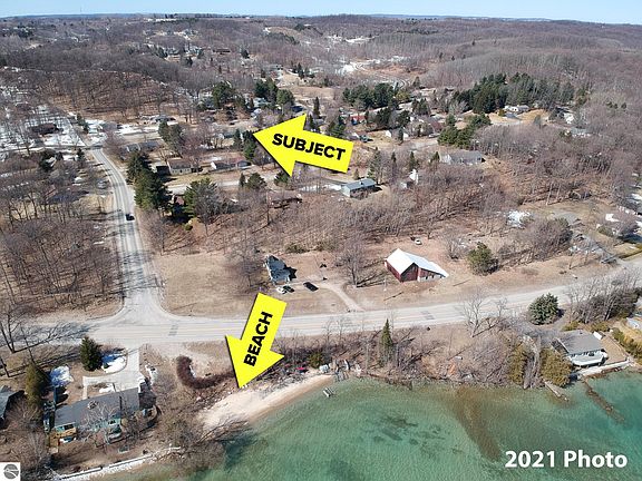 Located in a fantastic neighborhood conveniently located between Traverse City and Suttons Bay, this home offers 230 feet of shared sandy frontage on West Grand Traverse Bay! With approximately 2,026 finished sq ft, it features 4 bedrooms, 2.5 baths—including a private primary suite—and a main floor living room and a lower-level family room, both with cozy wood-burning fireplaces. Additional features include newer Pella windows and doors, a natural gas furnace + heat pump/air conditioner, plenty of unfinished basement storage space, a dedicated workshop, and an extra-large attached 24x40 4+ car garage! Situated on a spacious 0.56-acre level lot, the property enjoys a large, fenced backyard with an underground sprinkler system, garden areas, and a rear composite deck. Located on a quiet, county-maintained paved road (no HOA dues here), it's just 7 miles from downtown Traverse City, plus, the sandy neighborhood beach is right across M-22, check it out!