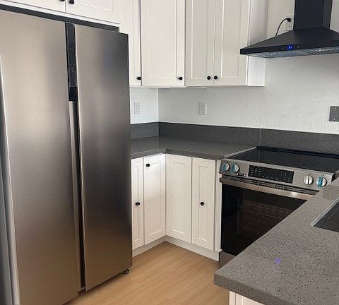 Stainless steel appliancesSpacious bedroomsWood flooringWasher and dryerOwn air conditioning unitCeiling fans in bedroomsDual paned windows