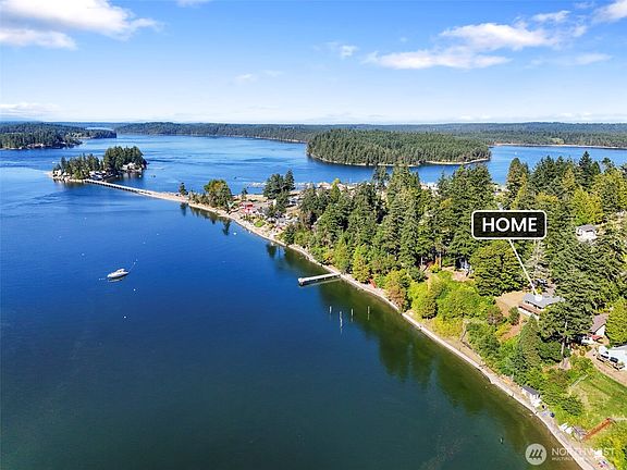 Exceptional waterfront estate offering on Totten Inlet! Nearly 2 acres in the Steamboat Island area with coveted tideland rights—an opportunity to enjoy waterfront living with income potential. This enchanting high-bank estate showcases sweeping views and privately owned beach rights w/ walk-down access. Around the home, a park-like setting w/ fruit trees offers a serene retreat where eagles soar and deer wander. Inside, the airy design features soaring ceilings, a propane stove, and walls of windows. The open-concept kitchen flows into the great room, w/ 2 beds, 1.75 baths, and a spacious rec room. A detached 2-car garage, carport, and ample parking complete this property—minutes from freeway access, yet worlds away. Virtually Staged