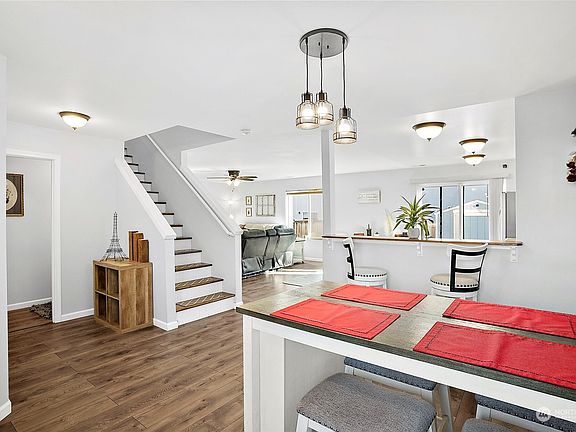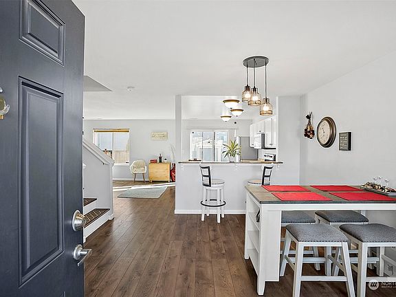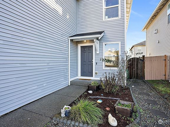 Step into the warmth of your new home! Inviting residence boasts a seamless open concept adorned w/stunning modern fixtures & accents, all set against the backdrop of newer laminate flooring adding a touch of elegance. Generously spaced kitchen, complete w/SS appliances, offers an abundance of cabinet & counter space, creating an ideal setting for hosting gatherings w/guests. The living room, a hub of comfort & style, is perfect for entertaining. Ascend to the expansive loft, that can transform into an office, gym or a game room & admire Mt. Rainier! Upgraded w/a tankless hot water heater, exquisite trim, doors, hardware, & a fresh interior paint palette. Lovely patio in the backyard with a garden shed & firepit that beckons you to enjoy!