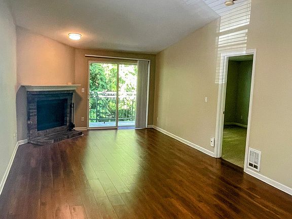 Top floor end unit in Kirkland Springs. So you're only sharing one wall and no one above you! New vinyl wood floors going into living space, carpet in bedrooms & Stainless appliances. Spacious Master bedroom with private vanity. Well appointed kitchen with open concept living. Vaulted ceiling with ceiling fan complement the living room. Private deck with storage overlooks water feature. Full size washer and dryer in unit. Outdoor community pool, newly updated clubhouse, and workout room. Convenient access to Juanita Village, 405, Juanita Beach, and all Kirkland amenities. Parking: 2 Reserved Parking Spots. 1 Covered 1 Not. Bedrooms have bathrooms in between them for perfect privacy for you and yours. This is going to go fast so grab it while it's available! 1st & $1200 deductible to move in.