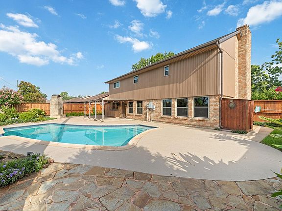 Your tropical paradise awaits! Well-maintained Perry home on a large corner lot with a private backyard retreat featuring a gunite pool, waterfall pond, and extended patio with lighting, outdoor fireplace, and built-in cabinets with sink. Major system updates include a recent roof (Jan 2025), Trane A/C (2021), water heater (2023), and double-pane windows (2017, with transferable warranty). The garage offers epoxy floors, built-in shelving, and an extended driveway added in 2025. Inside you’ll find double ovens, indoor utility room with gas hookups, gas fireplace, wet bar, and surround sound. Flooring includes ceramic tile, wood/marble stairs, and bedroom carpet replaced (Dec 2020). Additional features: 2 attic spaces (one walk-in), Rainbird front/back sprinkler system, fruit trees, keyless locks, and Ring doorbell. Never flooded (per seller). Fridge w/ ice maker stays. Zoned to Pasadena ISD with low HOA and tax rate. This one checks all the boxes—schedule your tour today!