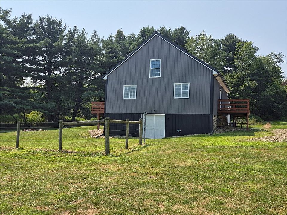Welcome to your piece of Guys Mills heaven! This newly renovated barn home has just over 26 acres and a 24x38 outbuilding with a 12 ft garage door to offer. Keep warm with the free domestic gas from the well on the property, usage limitations apply. The mix of rustic and modern are throughout the home. There is ample counter space in the kitchen with the oversized island. The heated attached garage is surrounded by a stamped concrete patio that leads to the back deck. The property has frontage on two roads and is a nice mix of woods and open fields, plus a deer stand, and established trails. There have been many sightings of deer, turkey, bear, fox, and other game on this property. A hunter's dream! This is a must see to fully appreciate!