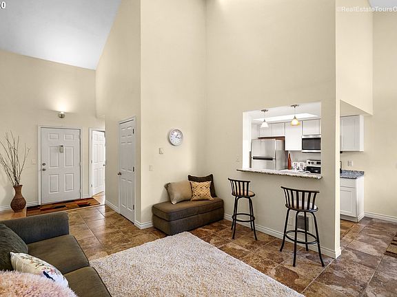 Terrific opportunity: quality, location & amenities. High vaulted ceilings create a spacious ambiance & privacy (no one walking above you).The Open Floorplan lives larger than sq footage would imply. Fireplace & Eating bar. All New S/S appliances in 2018. Frig, Washer/Dryer, AC Unit included. Large closets. Covered deck w/territorial view & storage closet. HOA includes clubhouse w/kitchen, pool, water, sewer, garbage, maintenance, landscaping. Adjoins Mt Talbert Park w/ extensive walking trails.