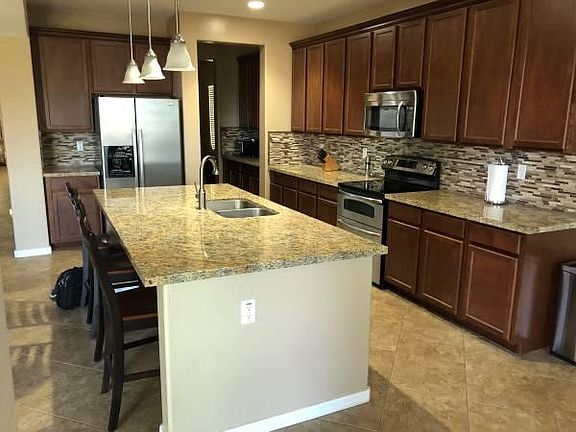 Gorgeous! Energy Efficient! This single level, 4 Bed, 2.5 Bath, 3 Car garage is located in a very popular North Peoria community Sunset Ranch. Be close to great shopping, restaurants and highways! The home features a nice landscaped grassy area, fruit trees, separate grassy area for pets and a large play structure for the kids, all on an oversized lot. The kitchen features granite counter tops, huge island, breakfast bar, stainless steel appliances, lots of cabinets, a big walk-in pantry and an additional butler s pantry for MORE storage. The house has an oversized master bedroom and bathroom featuring both shower and bathtub and HUGE walk in closet. There is also a large den and dining room. Laundry room includes, laundry sink with granite counter tops, frontloading W/D with pedestal storage and full cabinets for more storage A whole house water filtration system means clean, soft water before it enters this Energy Certified home. SAVE MONEY and check out the monthly average of $122 for electric, even in the AZ heat! IT S A MUST SEE Owner pays HOA fees