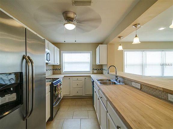 AWC - Taking Backup Offers A FULLY RENOVATED, MOVE-IN READY HOME! This spacious, remodeled residence has been appraised at over 1700 square feet. It boasts a great room layout with combination living and dining, a separate family room, three bedrooms (plus a bonus room off of the master) and three bathrooms! Step-tiled flooring flows gracefully throughout the entire residence showcasing the brand new finishes; fresh paint, recessed lighting, ceiling fans and all new bathrooms. The completely modernized kitchen features a stylish appearance with solid oak butcher block counter tops, a breakfast bar with drop lighting, lots of white cabinetry with two corner revolving built-ins and brand new stainless steel appliances. It opens to the main living area, which drifts easily into the family room with a working fireplace as its center piece. A set of French doors access the covered, tiled and screened lanai. The Owner's suite is well-appointed with a master bath and bonus space that would make the perfect den or office with its own entrance. A privacy fenced backyard has a 75-foot rear lot line and is a nice place to enjoy the outdoors with a paver patio and a charming outbuilding (w/electric) providing many options. Additional features include a new roof and a working well with a new pump for lawn irrigation. A circular paver brick drive offers additional parking for the ship-shape 1-car garage. This wonderful opportunity is situated in central Bradenton. There is no HOA, so bring your boat or R.V. to this fantastic location!