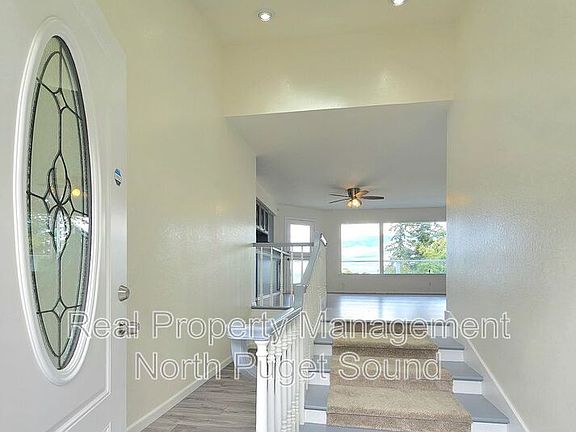 Welcome to this stunning 2-bedroom home in Mukilteo, offering breathtaking views of the Sound, Island, and Ferry! This home is a perfect blend of comfort and luxury, featuring 2.5 bathrooms, including an en suite in the primary bedroom. The home is adorned with skylights that fill the space with natural light, enhancing the LVP flooring throughout. The kitchen is a chef's dream, equipped with stainless steel appliances and a wine fridge. The home also offers the convenience of washer/dryer hook-ups. The full-length view deck, accessible from the primary bedroom and dining room, is perfect for enjoying the scenic views. The property also boasts an oversized 2-car garage and is set back off the main road, offering a sense of privacy. This home is a true gem in Mukilteo, offering a unique blend of comfort, luxury, and stunning views. *Downstairs is not part of the rental and is not accessible to the upstairs residents*
