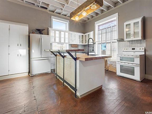 Fore! You’ll score big with this one. Welcome to 1002 9th Street in Perdue—a former bank turned one-of-a-kind home, just a short stroll from one of the best small-town golf courses around. Once the Union Bank of Canada, this place used to hold stacks of cash… now it’s holding stacks of character. Inside, you’ll find an open-concept main floor with exposed brick, wood pillars, and a bright kitchen with a central island—perfect for tallying up birdies or post-round snacks. Gorgeous windows flood the home with light, while the double glass doors in the foyer and antique details throughout add a touch of old-world charm. Upstairs, the massive primary bedroom features a fireplace, plenty of windows, and an open second-floor area that looks down onto the main—ideal for practicing your victory speech after a great round. Original vault doors nod to the home’s banking past, and the west-facing backyard is the perfect spot to unwind with a sunset and a cold drink after 18 holes. And while there’s no Ezee-Wrap 1000 dispenser (yet), there’s more than enough room to add one—because who doesn’t want a house that’s a hole-in-one for history, character, and comfort?