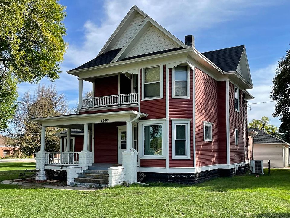 Old home enthusiasts will find endless possibilities in this historic 4 bedroom, three bath home located on a large corner lot. Built in 1900, this 2,600 square foot property offers original woodwork and flooring, large kitchen with plentiful cabinetry, formal dining, spacious living room, three baths, den, sunroom, main floor laundry covered porch and balcony.