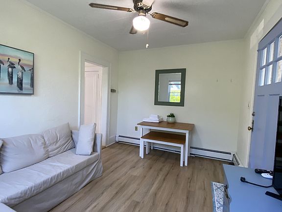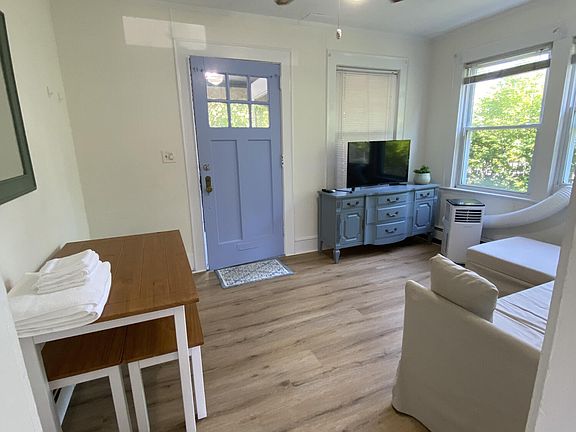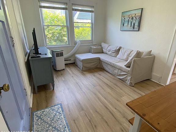 Available Now. Annual or Multi-Year Lease. Clean freshly painted second floor apartment one block to the sand at Belmar Beach. Monthly rent stays the same for summer and winter for an annual tenant. Three rooms plus one new full bath & a small half bath: 1st is a private bedroom; 2nd is the kitchen; 3rd is the LR. All Utilities and basic WiFi service are flat $300/mo. Full dry clean basement has private laundry. Cute covered front porch. Two A/C units are included. Unit has been professionally cleaned and is available now! Perfect opportunity for someone who loves the beach or works locally. Landlord will consider small pet.