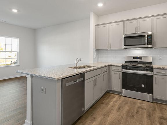 As you step inside this 3-bedroom, 2.5-bath townhome you'll discover 1,418 square feet of comfortable living space. The first-floor living area is designed with an open-concept layout, seamlessly connecting the kitchen, living, and dining areas for a versatile space ideal for everyday living and entertaining. The kitchen boasts shaker-style cabinets, granite countertops with a tile backsplash, and stainless steel appliances. The spacious kitchen is perfect for meal prep, cooking, and entertaining. It's a versatile and functional space with plenty of room to work and socialize. The living and dining area is conveniently located nearby, keeping you close to the action. Relax and unwind on your back patio. Elevate your living experience with the second-floor's versatile rooms. Whether you need extra bedrooms, functional offices, or additional bonus spaces, this floor has it all. Indulge in the comfort of carpeted floors and spacious closets in every bedroom. Not to mention, the conveniently located laundry area in the hallway makes chores a breeze. The primary bedroom has its own attached bathroom, featuring a 5' walk-in shower with a clear glass door, a double-bowl vanity with quartz countertops, and a spacious walk-in closet.