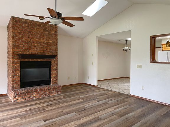 Welcome home to comfort and convenience. This charming floor plan provides two living areas, and a large covered patio that overlooks Pheasant Run golf course. New Luxury Flooring in main areas! While the backyard views are big, the mowing responsibilities are not, so you'll have more time to enjoy friends and family. The kitchen has a window overlooking the main living area so you can keep an eye on things while cooking. There are several skylights throughout the home. On cold days, you can keep warm curled up in front of the fire with the simple flip of a switch. The primary suite includes his and her sinks as well as a walk-in closet and additional wall storage for linens. No need to worry if storms rolls in as this home has a storm shelter in the garage. The garage is also plumbed for a water softening system. The home is nestled on a quiet street within minutes of Enid's major shopping centers as well as Vance Air Force Base. This home is ready for you to make it yours. Agent/Owner listing.