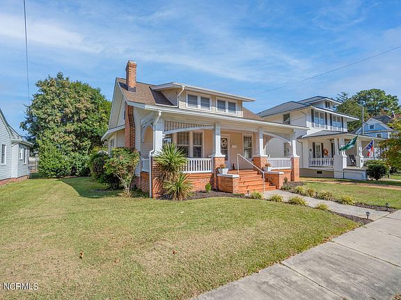 This craftsman-style home, welcomes you with its curb appeal and period charm. The large front porch offers space for great conversation, watching the sunset from the porch swing, all while listening to the sounds coming from the antique piano. The large dining room greets you as you come in featuring a beautiful fireplace, and orginal wall sconces.  The office/flex room is a writers dream with it's great natural light and cozy atmosphere! As you walk through the home you will find a great sized living room, and the first of three full sized bathrooms. This bathroom features a relaxing claw-foot tub and weinscotting. Next is the kitchen with exposed beams, and Edison style lighting. The primary bedroom and private en-suite are located on the first floor with muliple closet spaces for storage. Upstairs you will find two bedrooms and a full bathroom. The full fenced back yard is great for entertaining all ages.The multi-level deck has built in sitting great for BBQs and gatherings. The  jungle-gym oasis includes a sand box, treehouse, and a zipline! The large shed is perfect for holding all your lawn equipment, leaving you with lots of open space for outdoor fun.
