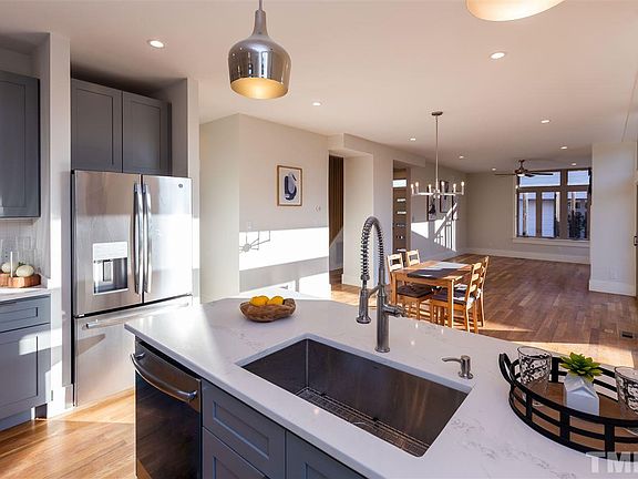 Contemporary, 2-story, 3 bedroom + bonus room, 2.5 bath new construction home in Lyon Park. Corner lot in the Morehead Montessori priority zone and Jordan HS district. Less than 1/2 mile from the Durham Food Coop and less than a mile from the American Tobacco Campus, Bulls Stadium, and DPAC. Easy access to Duke, RTP, and interstate. Gas fireplace, premium GE appliances, all LED lighting, quartz countertops, Dual-zone Nest Thermostats, fenced yard w large deck, & detached garage with vaulted ceilings.