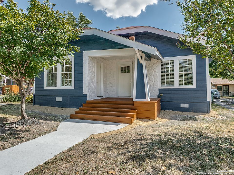 Discover timeless charm with modern amenities in this beautifully restored 1936 Craftsman style home in northcentral San Antonio. Nestled on 2 corner lots in the heart of Beacon Hill. The open floor plan offers a seamless and delightful living experience in this open and spacious home. Highlights: Fully remodeled open floor plan with 2 living areas, 3 beds and 2 full bathrooms, 2 of the bedrooms have private terraces with French doors, a cozy fireplace and the abundance of natural light throughout the home provides a serene ambiance for relaxation. Property sits on 2 lots that offers much space and flexibility. Also added is the large carport and shed for storage and hobbies. The smooth flow from living room, kitchen and bedrooms to the outdoor covered terrace makes for a wonderful blend of historic charm and modern comfort. Mature fruit and decorative plants adorn this beautiful corner lot home. At this PRIME LOCATION you are only steps away from nearby community parks and recreational facilities along with shopping, dining and entertainment venues. Also located a short distance from downtown and major highways. This home offers the perfect mix of historic charm, modern living and an unbeatable location. Don't miss your chance to own a piece of San Antonio's history in one of the highly desired neighborhoods!