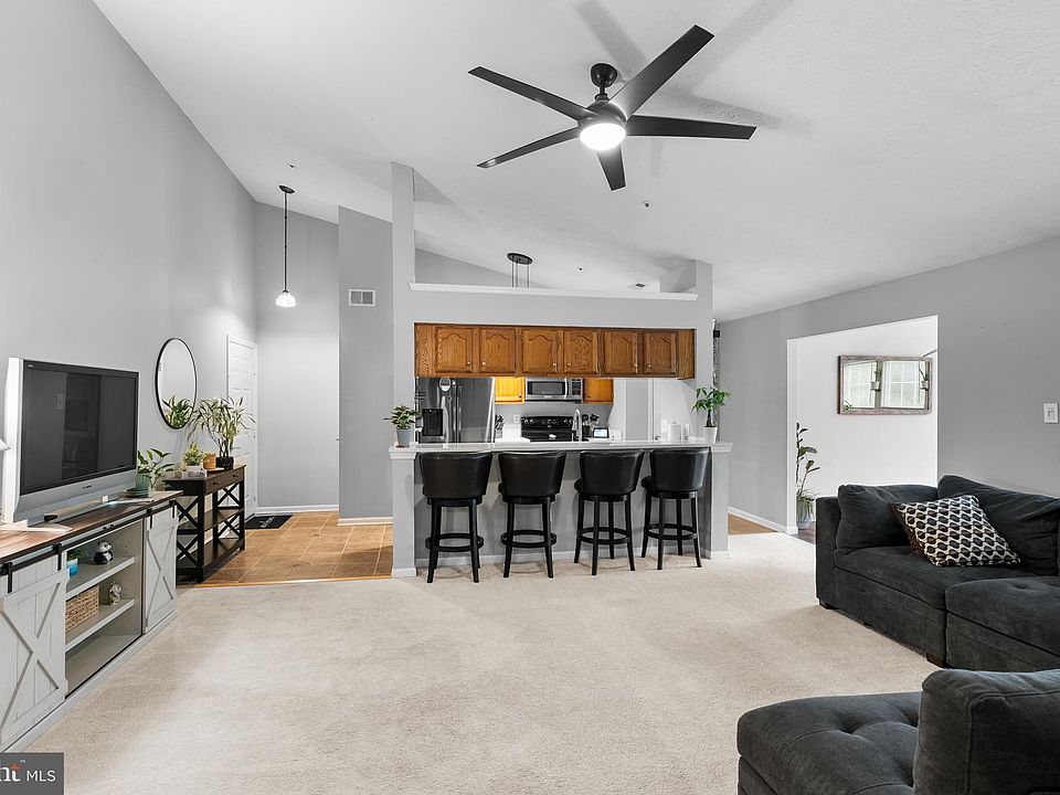 Welcome to this beautifully updated rarely available top-level condo in the desirable Brentwood Manor community. This home features an open floorplan with soaring vaulted ceilings and a cozy fireplace and abundant natural light. The kitchen is equipped with sleek quartz countertops, a large modern sink, stainless steel appliances, and a spacious pantry—perfect for any home chef. Enjoy peaceful wooded views from the bright sunroom dining area or step out onto the private covered deck to enjoy a cup of morning coffee. The layout includes a generously sized secondary bedroom, a full hall bathroom, and a spacious primary bedroom with an ensuite bath and walk-in closet. Both bathrooms have been tastefully updated with modern finishes. Additional upgrades include a new HVAC system, new washer, and a newer dishwasher, luxury vinyl plank flooring in the sunroom, a new intercom system, and fresh paint. The in-unit laundry room includes a washer and dryer for added convenience. This community offers low maintenance living with amenities such as exterior building upkeep, lawn care, snow and trash removal. Ideally located just minutes from downtown Bel Air and close to I-95, MD-24, and US-1 for an easy commute.