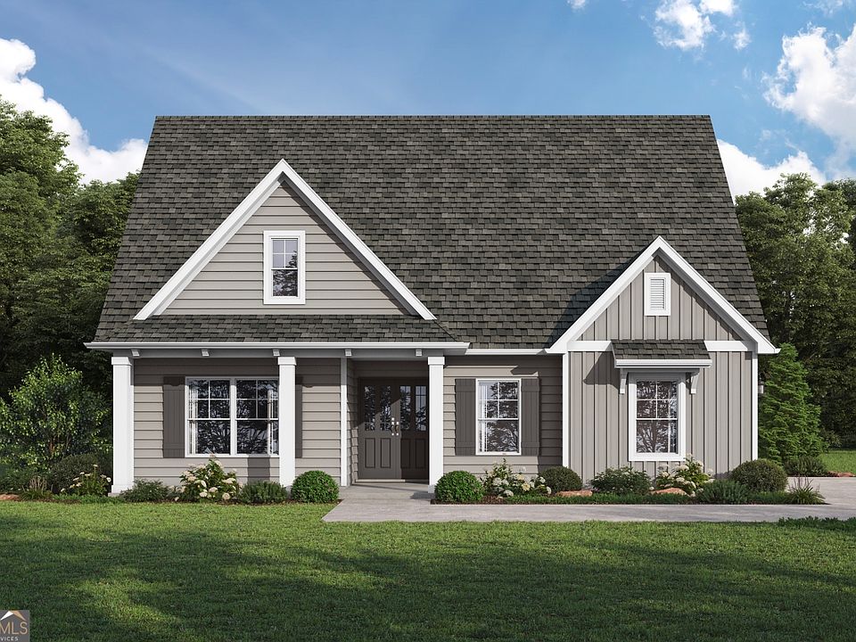 The Logan, brand new floor plan! Step into your foyer with a trey ceiling and shadow box trim. Get ready to entertain friends & family in the open layout of the social hub of the home. Gather around the quartz countertop island in the kitchen to share appetizers & stories about your day. Step outside the dining area to the patio and put some food on the grill. A study or office space is conveniently located next to the kitchen as the central hub of your home. Your secluded primary suite comes complete with a trey ceiling, dual vanity in the bathroom, separate tub & shower along with a walk-in closet that connects conveniently to your laundry room. The other 2 bedrooms also feature trey ceilings & share a full bath. Upstairs features an open loft or media room and a private bedroom with ensuite, great for guests to relax and unwind. Store more and stay more organized with your 2 car garage. Photos of a similar home, options & upgrades may not be included in price.