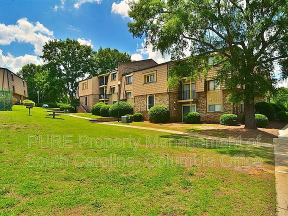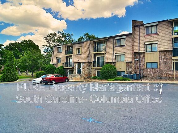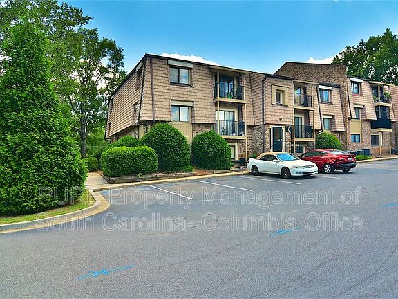 Neat 1 bedroom, 1 bath, ground-level, condo in the gated Briargate Condominium community in NW Columbia. Living room off entry open to dining area. Galley-style kitchen includes an electric stove, dishwasher, and refrigerator. Spacious bedroom has a walk-in closet that connects to full hall bathroom with tub/shower. Laundry room in building. Shaded common area with mature trees and barbecue area. Gated community w/ two pools, clubhouse w/ free Wi-Fi, 24-hour fitness center, media room available to reserve, charcoal grills, picnic tables, and playground. Storage units available to rent. Water/sewer included. Convenient to I-20/I-26, Harbison dining/shopping, and Downtown Columbia. Briargate HOA requires a separate background check ($26) and pet fee ($100) for approved applicants age 17+ ; additional fees/rules may apply. Per HOA, pets must not exceed 50lbs and 20 inches tall when full grown. *The shower/tub combo is being resurfaced to clean white at turnover!
