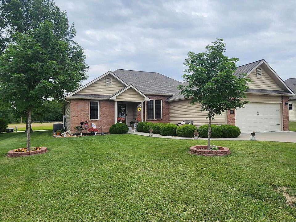 Looking for a custom built Ranch Home? Look no further! Beautifully landscaped and maintained 3 bedroom, 3 bath home is move in ready with ALL the extras! Enjoy your outside with a covered porch or on the patio with a privacy fence and beautifully landscaped back yard. From the Foyer you will notice arched entry ways into the dining and living room and STUNNING wood floors. Keep cozy in front of the electric fireplace in the large living room with vaulted ceilings that open up into the eat in kitchen and formal dining room. Custom cabinets blend perfectly with the wood floors. Private Master Bedroom and Bathroom with a walk in closet! The other 2 bedrooms are situated on the opposite side of the home which share another full bathroom! Full basement with bedrooms framed in ready to be finished! There is also a full finished bathroom in the basement. With the great floor plan in a wonderful neighbor, this home won't last long!