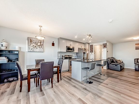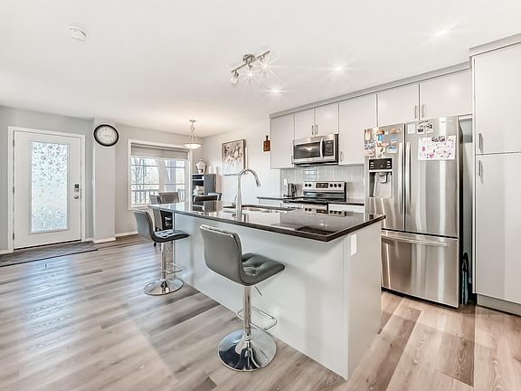 NO CONDO FEES, a spacious double garage, Central AC, a FULLY FINISHED BASEMENT and a huge rooftop patio define this versatile home. This fantastic townhome is move-in ready with 3 bedrooms, 3.5 bathrooms, and comes with a creative & functional layout that is perfect for any family. Sleek & stylish decor throughout, upper-level laundry room & patio balcony that is perfect for entertaining. Studio-like feel with all the modern finishes including UPGRADED SS appliances, quartz countertops, luxury vinyl plank flooring, beautiful cabinetry, & spindled railing. Spacious primary bedroom with its own private ensuite finished with gorgeous ceramic tile & WIC. The basement is meticulously finished with a large rec room, full washroom and a home studio. Located close to trails, parks, ponds, shopping at Currents of Windermere, and the Stillwater Amenity Centre with a splash park and skating. Move-in ready and packed with modern comfort.
