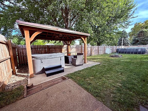 The fenced in backyard is divided into two sections, there is a dividing fence between the two sections. Section one contains a hot tub area with gazebo as well as a foundation area for a 16 x 32‘ pool section 2 contains a 550 ft.² playground shed outdoor patio.