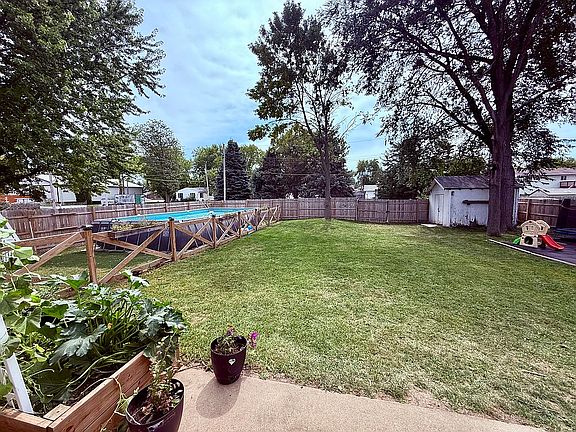 Privacy fence is 6 foot tall cedar panel and was installed in 2023. There is a walk-in gate that connects to the garage as well as an 8 foot gate leading to the back alleyway for riding lawnmower access.