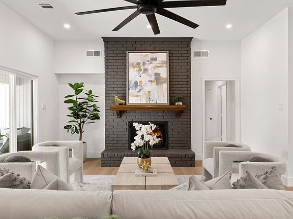 Highlights include a showstopper primary suite with custom walk-in closet, as well as exposed origami white brick + champagne brass accents in the spa-like second bathroom. What a vibe. Children and pets are no match for the durable luxury vinyl plank flooring. Flexible options for 4th bedroom just off the living room - work from home office, play room, TV den, dog mecca - you name it.