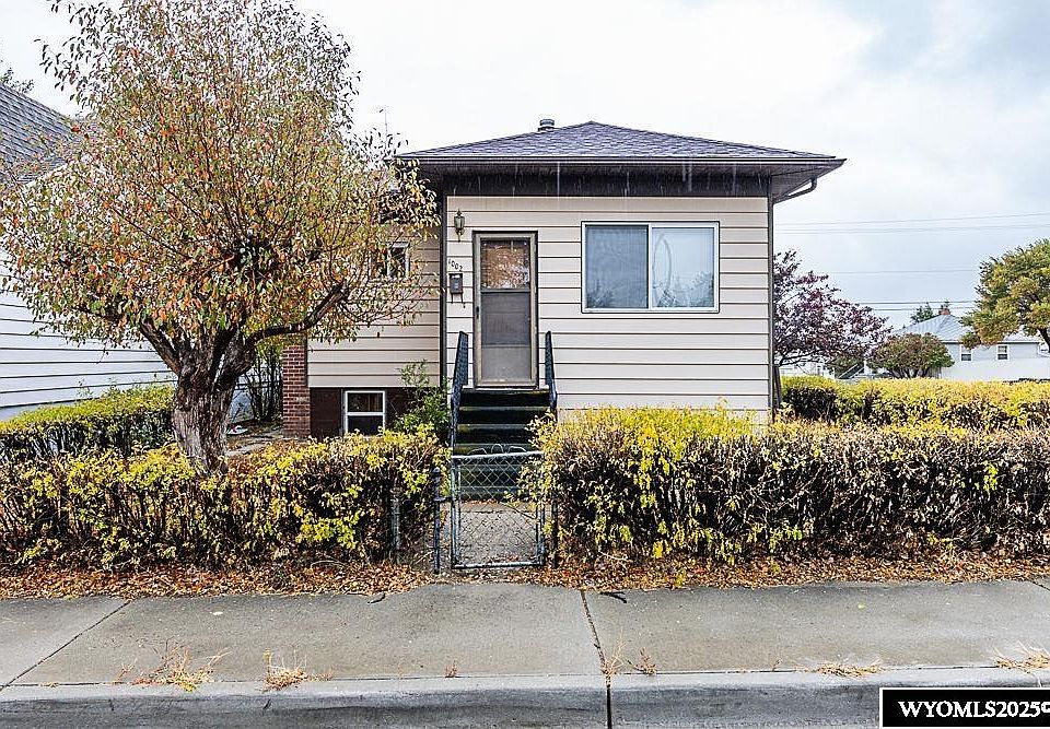 3 bedroom 2 bathroom home with 2 car detached garage, fenced-in yard, and walk-out basement to a concrete patio space. The entry level of this home has a large living room with a wood-burning fireplace, kitchen with updated appliances (all stay with the home), a bedroom with a bonus room, and a full bathroom. The basement has another family room with another fireplace, laundry room (washer and dryer stay with the house), two bedrooms - one of which has an exterior access door, and another full bathroom. The back/side yard just had new sod laid this summer! To schedule your tour of this lovely home, call or text Broker Emily Lopez with High Country Realty at 307-389-1667 today!