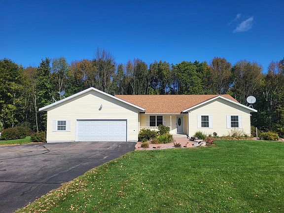 BEAUTY IN NATURE ABOUNDS...gorgeous sunsets, woods & privacy are only a few of the reasons you will want to take a look right away at this almost 20A property located in Marshfield school district on hard-surface road. The inviting front porch leads to the foyer of this 3BR, 2full & 2half BA ranch open to the formal DR/LR w/10' ceiling and gas FP. Kitchen boasts center island w/smooth surface cooktop, double oven, refrigerator & DW w/lots of cabinetry & counter space accented w/tile backsplash & don't miss the walk-in pantry & laundry room w/washer/dryer & half bath off the back entry from the garage. The kitchen's dinette space w/patio door leads to the sunroom w/vaulted wood ceiling & walls loaded with sunny windows overlooking the woods and an access to the large concrete patio perfect for entertaining. Primary suite incls a walk-in closet & private bath w/jetted tub, separate shower & double sinks-down the hall is another full BA with tub/shower near the other 2BRs. Partially finished LL incls a rec room with windows, half bath and plenty of storage plus there is an oversized 2,-car att garage and addt'l detached garage complete w/hoist, asphalt drive, mound system, & vinyl siding for low maintenance and more. No need to leave home to enjoy nature, hunting or hobbies!