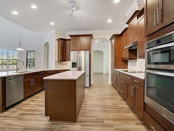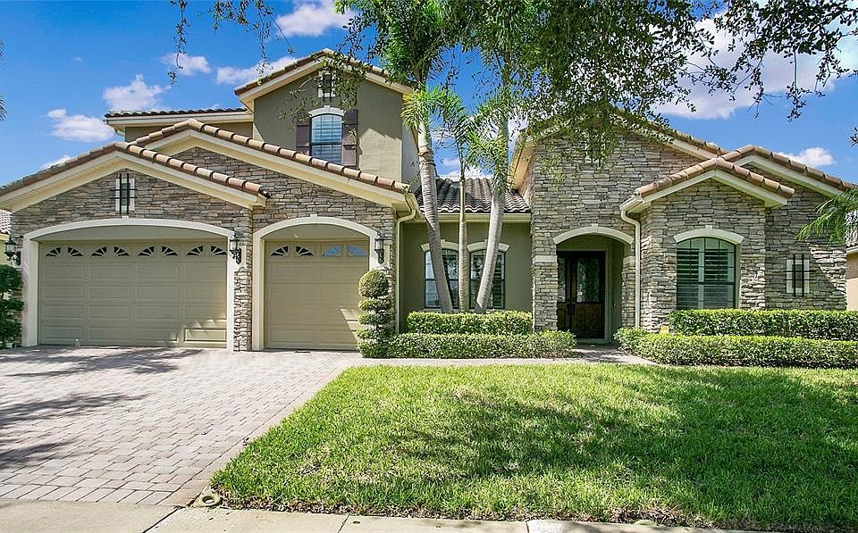 One or more photo(s) has been virtually staged. This is it! Welcome home to this SHOWSTOPPER Pool home with water views overlooking the 7TH HOLE tee box in highly sought after 24 manned gated community of Eagle Creek. Exclusivity, Privacy and Security are at a maximum with access past a 2nd gate required to enter the Balmoral subdivision after getting past the 24 manned gate within Eagle Creek. This like new home feels larger than it is and every room is filled with natural light. The kitchen was recently updated with quartz counters, solid wood cabinets and stainless steel appliances (including a double oven). It overlooks family room with a 22ft ceiling and views of the screened in saltwater pool and travertine deck. The primary suite is downstairs and so is the 2nd bedroom off the 2nd bath that doubles as the pool bath. Upstairs you will find BRAND NEW CARPET, 3 bedrooms 2 full bathrooms and a loft space. Eagle Creek is the jewel of Lake Nona and besides it's incredible golf course it offers multiple pools, a fitness center, basketball courts, tennis courts, playground and is golf cart friendly. Click Virtual Tour Link 1 for Matterport Interactive Walkthrough. Click Virtual Tour 2 for a drone view of the entire home.