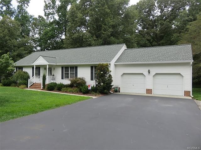 Custom built and well maintained rancher with garage on a beautiful 2 acre lot in New Kent County! Before you go inside, you will appreciate the double width paved driveway, extra graveled parking space, concrete sidewalk, and covered front stoop with aluminum rails. Inside, you'll discover a welcoming foyer providing access to a spacious formal living room and a comfortable family room with open flow to a delightful, eat-in kitchen (gas log space heater included). Kitchen features granite counter tops and new flooring. All appliances stay! Formal dining room too. Master suite with double closet and full bath. The attached 2-car garage offers direct entry to the house and boasts a sink, workbench and plenty of pegboard. Home wired for generator! Roof and gutter systems replaced in recent years! Large rear deck and storage shed. Enjoy local New Kent wineries and golf courses as well as easy access to both Richmond and Williamsburg. The Pamunkey and Chickahominy Rivers are close by and afford ample boating and fishing opportunities. A chance to enjoy one level living on a state maintained road. Agricultural zoning. No homeowners association! One year warranty. A great find.
